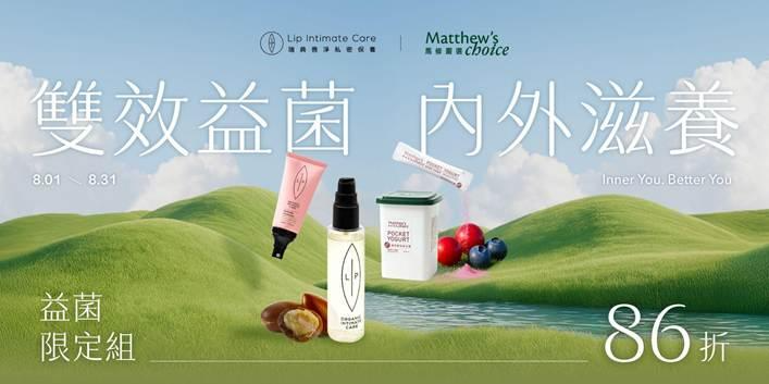 馬修嚴選除了高品質優格,更延續30年菌種專業,將無加糖優格營養精緻濃縮,打造全國首支優格益生菌;而來自瑞典的 LIP,則透過天然植萃與益生元成分,為私密肌膚打造健康基礎。
